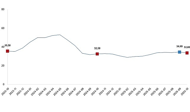 Tarımsal girdi fiyat endeksi (Tarım-GFE) yıllık %33,66 arttı, aylık %2,04 arttı Tarım-GFE’de (2020=100), 2025 yılı Ekim ayında bir önceki aya göre %2,04 artış, bir önceki yılın Aralık ayına göre %29,06 artış, bir önceki yılın aynı ayına göre %33,66 artış ve on iki aylık ortalamalara göre %32,30 artış gerçekleşti.